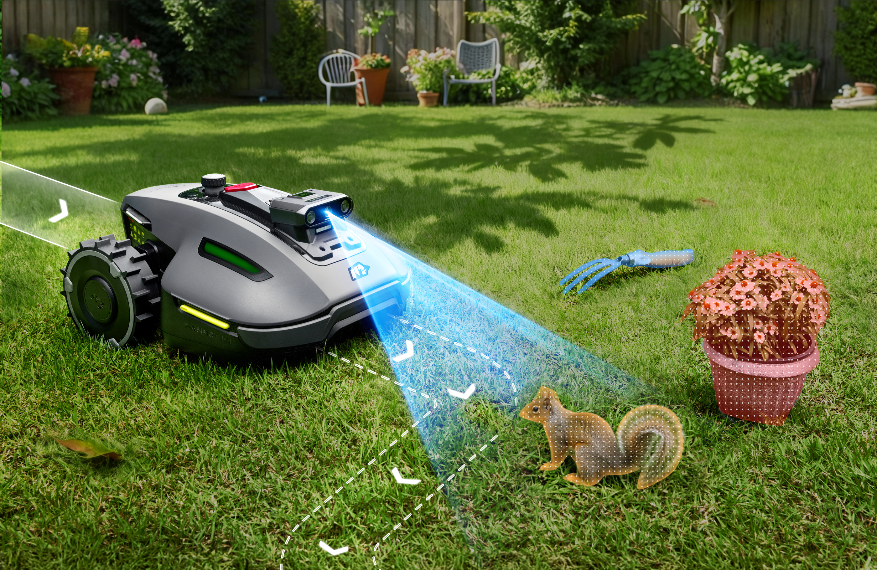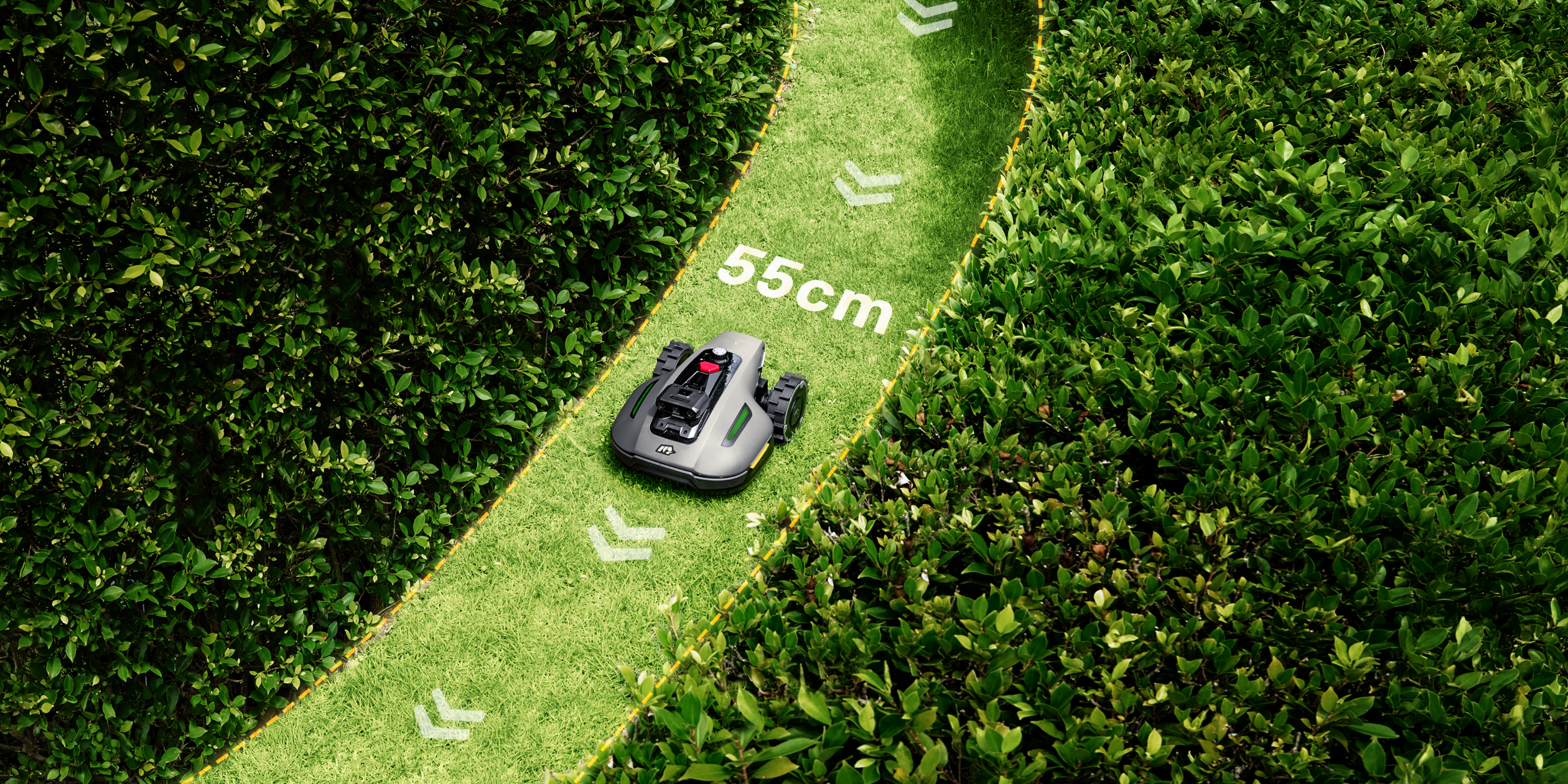 - Schnelle Einrichtung ohne störende Begrenzungskabel und ohne RTK-Antenne